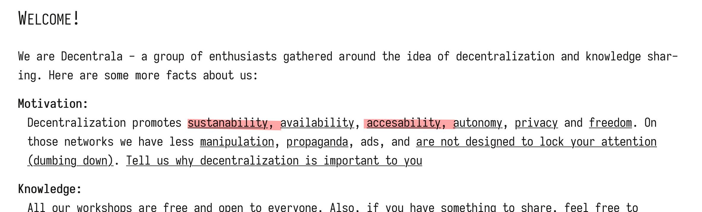 sustanability-> sustainabilityaccessability-> accessibilityThank you :)
